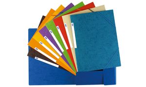 """ Chemise à  élastiques 3 rabats Top File - en carton, 390 g/m2 - puissance: 0,5 mm - avec élastiques, étiquettes de signalisation et 3 rabats - dimensions: (L)240 x (H)320 mm - style assortie: dans les couleurs bleu clair, vanille, noir, violet, vert clair, rouge, bleu, orange et jaune, conditionné= 10 pièces; tradition assortie: dans les couleurs bleu, orange, jaune, noir, rouge et vert - conditionné= 10 pièces, vendu uniquement au conditionnement """