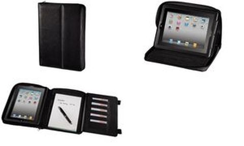 hama Housse pour iPad "Conference", format A5, cuir v�ritable, noir, portfolio pour �cran de 24,64 cm (9,7"), avec fonction support int�gr�e, chemise de conf�rence pour prot�ger contre la poussi�re, avec porte-stylet, compartiment pour cartes de visite, fermeture magn�tique (106358)
